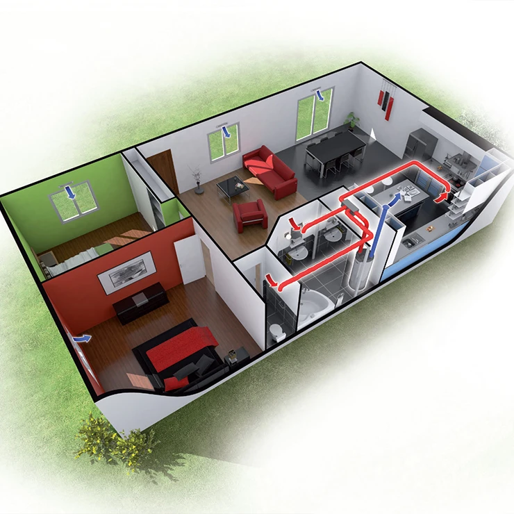 La mise en œuvre pour la partie aéraulique est similaire à celle d’une VMC. Il est donc nécessaire d’avoir des entrées d’air dans les pièces de vies (séjour, salle à manger, chambres…), et des bouches d’extractions dans les pièces humides (cuisine, SDB, WC…). Le chauffe-eau (qui est relié au réseau aéraulique) utilisera alors les calories de l’air extrait afin de réaliser la production d’eau chaude sanitaire avant de rejeter cet air (qui est vicié) à l’extérieur.
