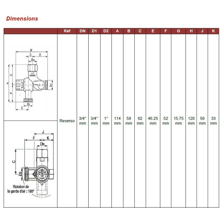 – Facilité de montage (raccord tournant diélectrique isolant qui évite la pose et l’achat de raccord intermédiaire)