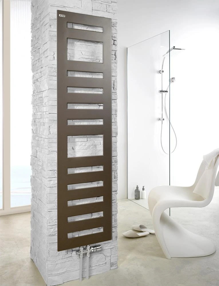 - Raccordements centrés en bas, entraxe 50 mm, compatibles monotube/bitube