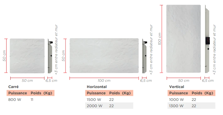 Sa carcasse en acier invisible donne la sensation que le radiateur flotte dans l’air. Ce modèle est décliné en 2 finitions structurées : natura noir et natura blanc et en 2 formats : carré et vertical.