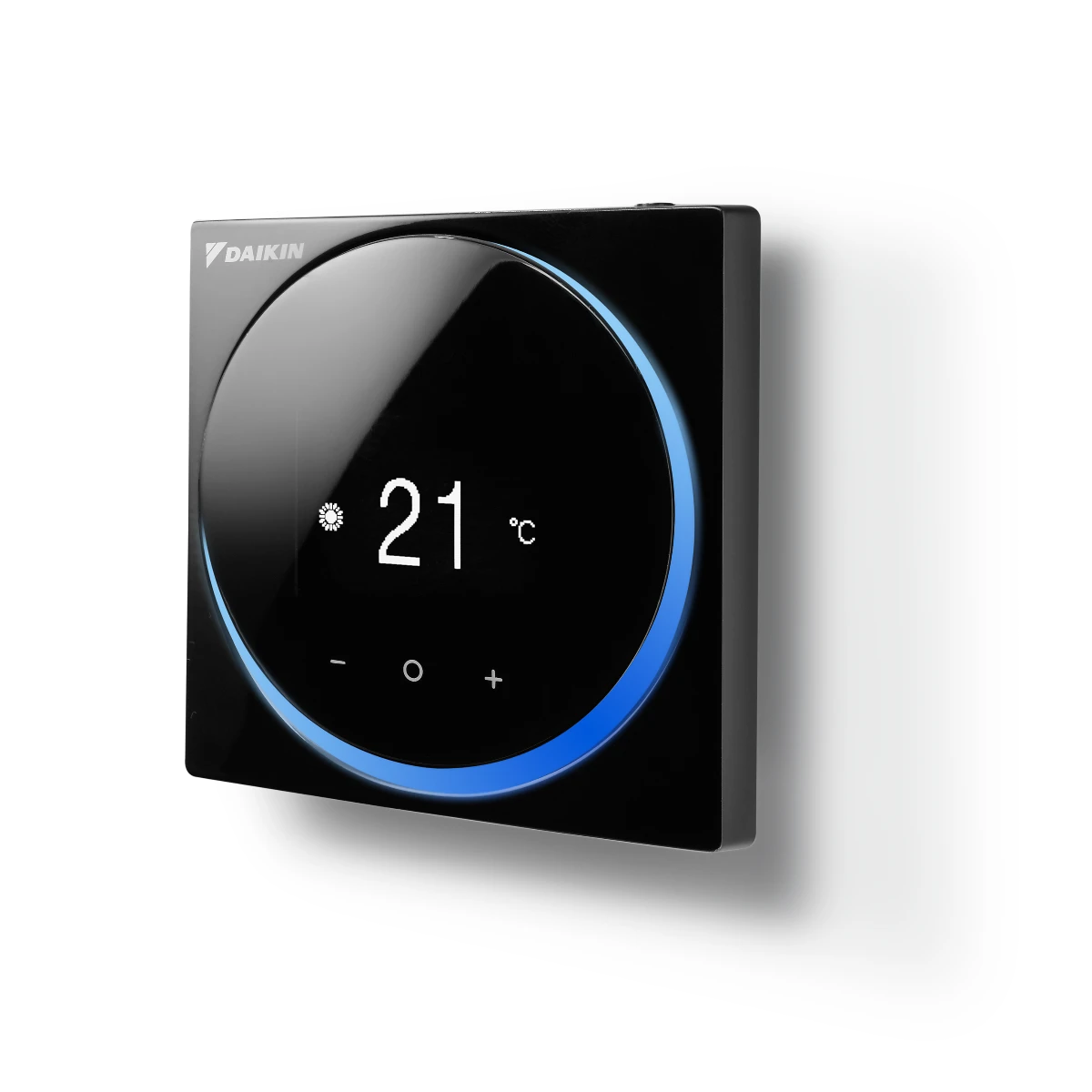Les courbes douces de la télécommande Madoka lui donnent une élégante forme épurée qui se distingue par son remarquable écran circulaire bleu. Ce dispositif de commande offre une référence visuelle claire avec des valeurs facilement lisibles, et ses différentes fonctions sont accessibles via trois boutons tactiles qui associent une commande intuitive à des réglages aisés, pour une expérience utilisateur améliorée.